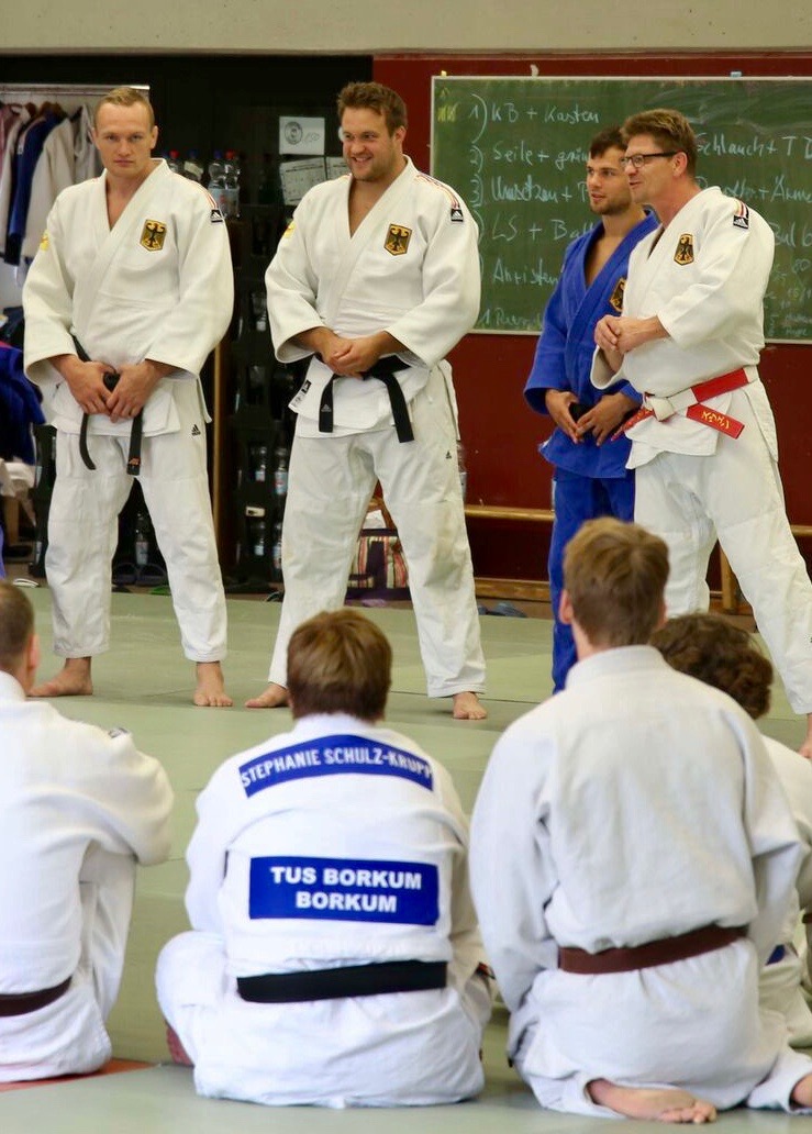 Ein fester Bestandteil der Fortbildungsmaßnahmen für unsere Trainer ist inzwischen die Teilnahme an der fünftägigen NJV-Sommerschule. Darüber hinaus versuchen wir – sofern es Zeit und Portmonee erlauben – so viele Lehrgänge wie möglich zu besuchen. Aufgrund der Insellage fallen hierbei häufig zusätzliche höhere Anfahrts- und Übernachtungskosten an, weswegen wir lange nicht so viele Angebote wahrnehmen können, wie wir möchten. Auch aus diesem Grund begrüßen wir das Engagement befreundeter Judogruppen, die uns besuchen und von ihrem Wissen profitieren lassen.
